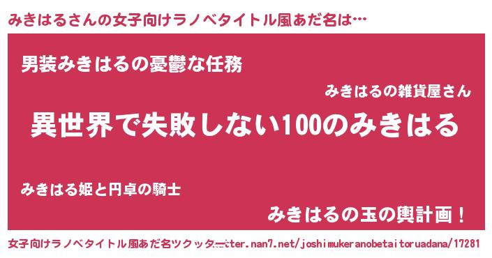 | 胡散臭い通販商品みたいなあだ名 | 『絶対に幸福をもたらす健康食品…その名も「みきはる」』 |
