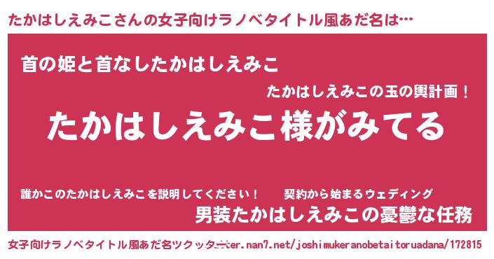 | 男性向けラノベタイトル風あだ名 | 『たかはしえみこの嫁は女の子じゃないと思った?』 |