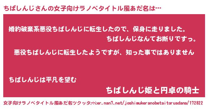| ヒーロー風カッコイイあだ名 | 『仮面チバダー』『スーパーチバシンジ』 |