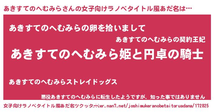 | 男性向けラノベタイトル風あだ名 | 『あきすてのへむみらの憂鬱』 |