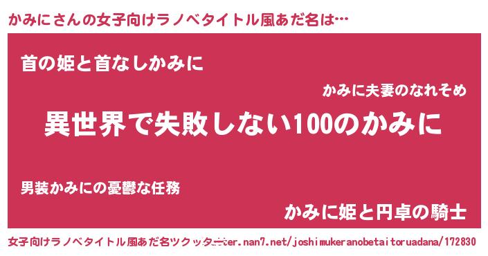 | 胡散臭い通販商品みたいなあだ名 | 『絶対に幸福をもたらす水素水…その名も「かみに」』 |