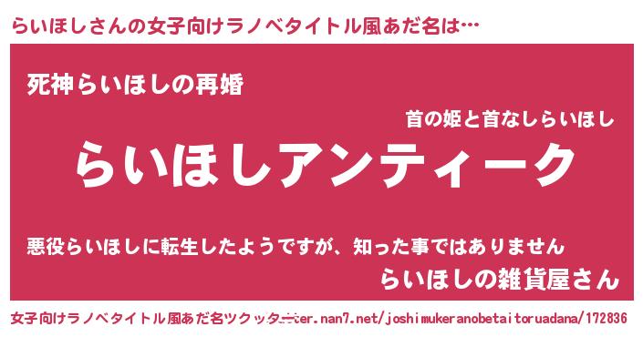 | 意味不明あだ名 | 『自称らいほし』『らいほしフォーエバー』 |