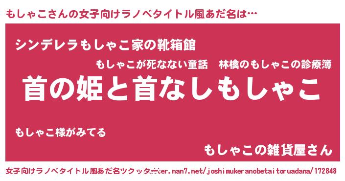 | 男性向けラノベタイトル風あだ名 | 『はたらくもしゃこさま!』 |