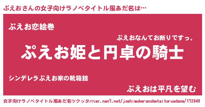 | 男性向けラノベタイトル風あだ名 | 『プエオアートオンライン』 |