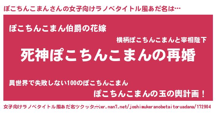 | 男性向けラノベタイトル風あだ名 | 『ノーゲーム・ノーポコチンコマン』 |