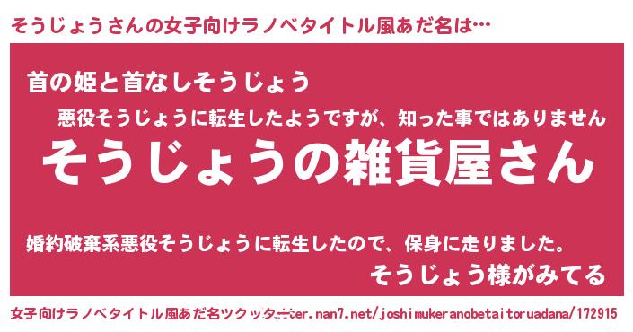| 男性向けラノベタイトル風あだ名 | 『やはりそうじょうの青春ラブコメはまちがっている 』 |
