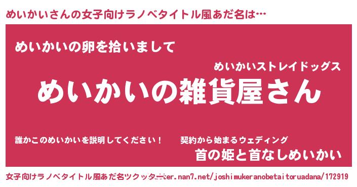 | 意味不明あだ名 | 『めいかいフォーエバー』『自称めいかい』 |