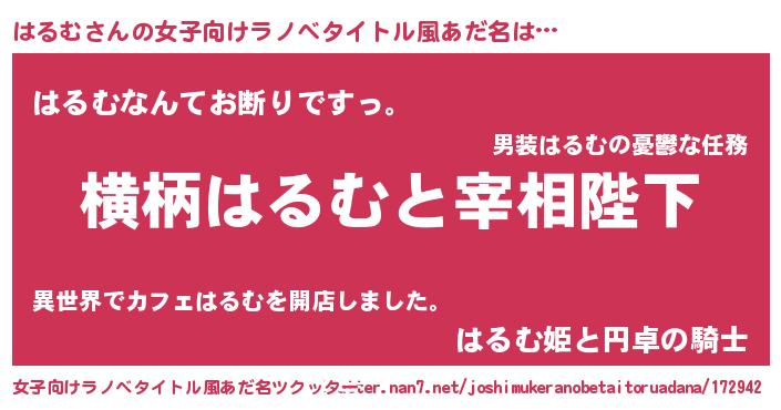 | 男性向けラノベタイトル風あだ名 | 『はるむに滅ぼされるだけの簡単なお仕事です』 |