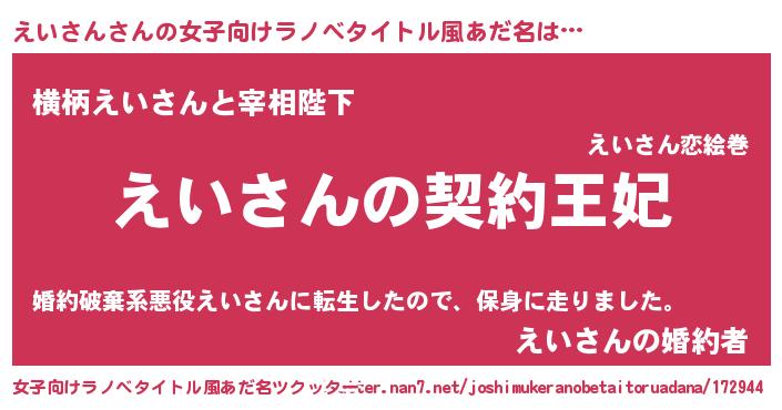 | 男性向けラノベタイトル風あだ名 | 『誰もが恐れるあのえいさんが、ぼくの専属メイドになるようです。』 |