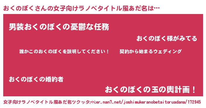 | 男性向けラノベタイトル風あだ名 | 『オクノボクアートオンライン』 |