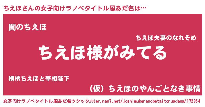 | ヒーロー風カッコイイあだ名 | 『幻影騎士チエ』『ウルトラ戦士チエホ』 |