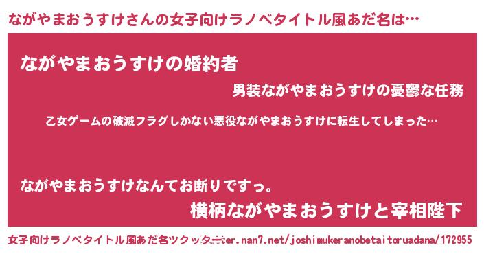 | 男性向けラノベタイトル風あだ名 | 『この素晴らしい世界にながやまおうすけを!』 |