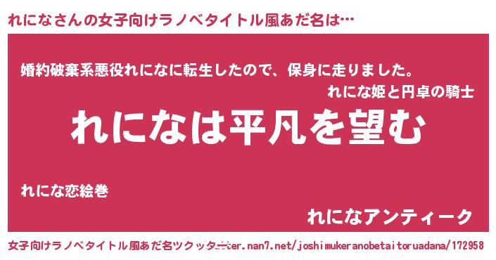 | 胡散臭い通販商品みたいなあだ名 | 『信頼と実績のサプリメント…その名も「れにな」』 |