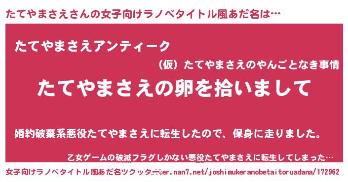 | 男性向けラノベタイトル風あだ名 | 『たてやまさえの嫁は女の子じゃないと思った?』 |