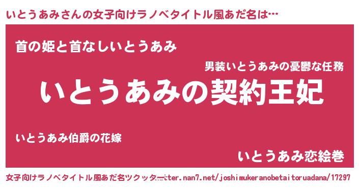 | 胡散臭い通販商品みたいなあだ名 | 『来世でも幸せになれる健康食品…その名も「いとうあみ」』 |