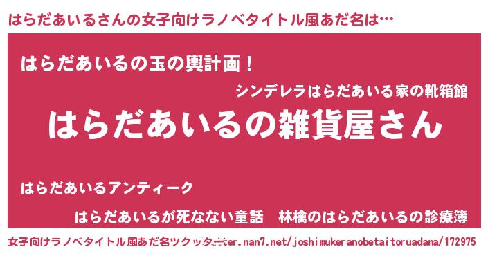 | 男性向けラノベタイトル風あだ名 | 『やはりはらだあいるの青春ラブコメはまちがっている 』 |