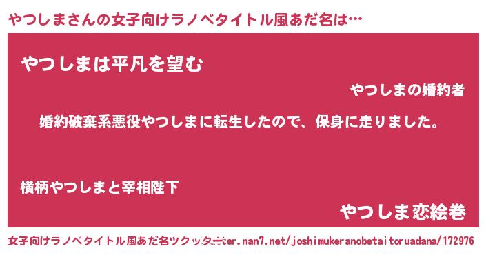 | 男性向けラノベタイトル風あだ名 | 『ヤツシマスレイヤー』 |