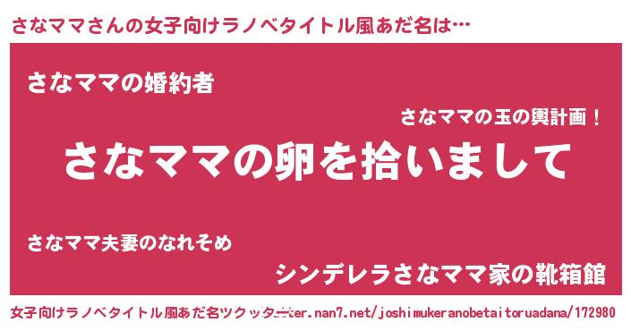 | 胡散臭い通販商品みたいなあだ名 | 『伝統あるサプリメント…その名も「さなママ」』 |