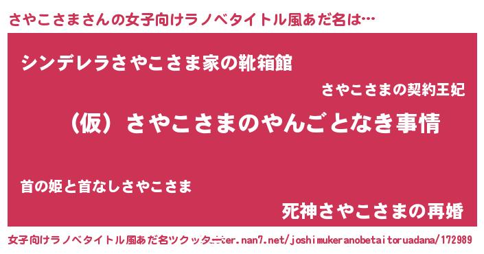 男性向けラノベタイトル風あだ名 | 『さやこさまの憂鬱』『緋弾のサヤコサマ』 |