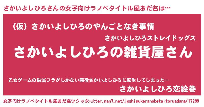 | ファンタジー風あだ名 | 『エターナルサカイヨシヒロー』 |