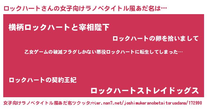 | ヘコむあだ名 | 『ロッぷりん』『ロックハート(小並感)』 |