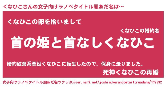 | 胡散臭い通販商品みたいなあだ名 | 『信頼と実績のサプリメント…その名も「くなひこ」』 |