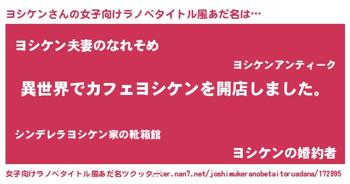 | 意味不明あだ名 | 『永久保存ヨシケン』『自称ヨシケン』 |
