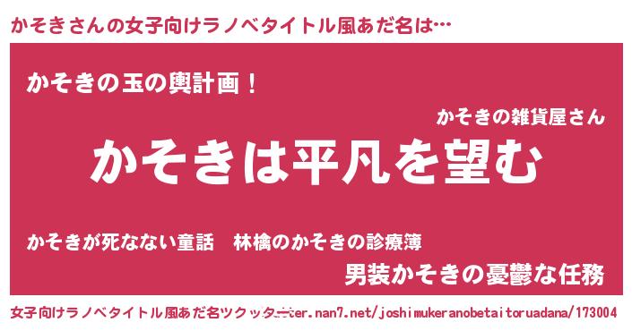 | 男性向けラノベタイトル風あだ名 | 『ダンジョンにかそきを求めるのは間違っているだろうか』 |