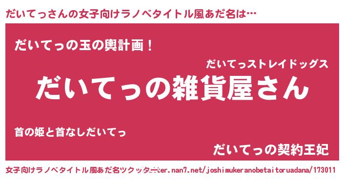 | 男性向けラノベタイトル風あだ名 | 『やはりだいてっの青春ラブコメはまちがっている 』 |