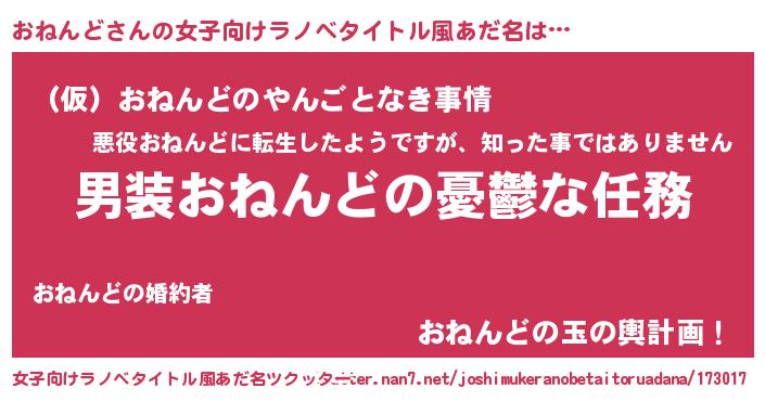 | 男性向けラノベタイトル風あだ名 | 『うちのおねんどが世界を掌握している!』 |