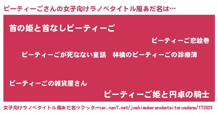 | 意味不明あだ名 | 『住所不定無職ピーティーご(40歳)』 |