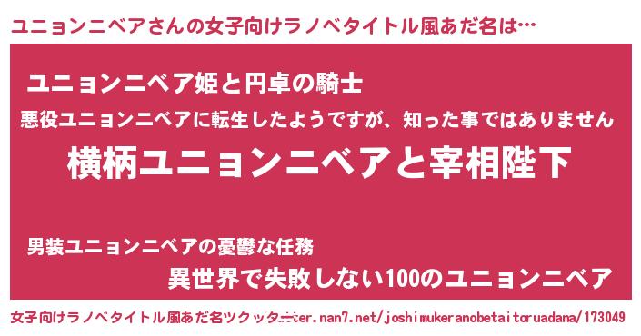 | 男性向けラノベタイトル風あだ名 | 『ユニョンニベアに滅ぼされるだけの簡単なお仕事です』 |
