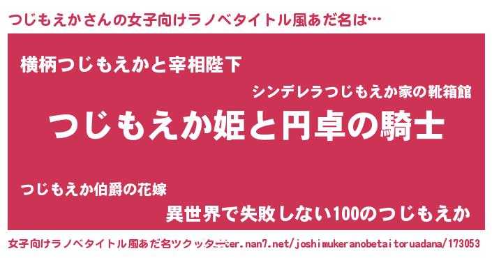 | 男性向けラノベタイトル風あだ名 | 『ツジモエカアートオンライン』 |