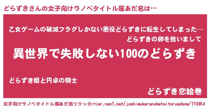 | 男性向けラノベタイトル風あだ名 | 『どらずきという概念が存在しない退屈な世界 』 |