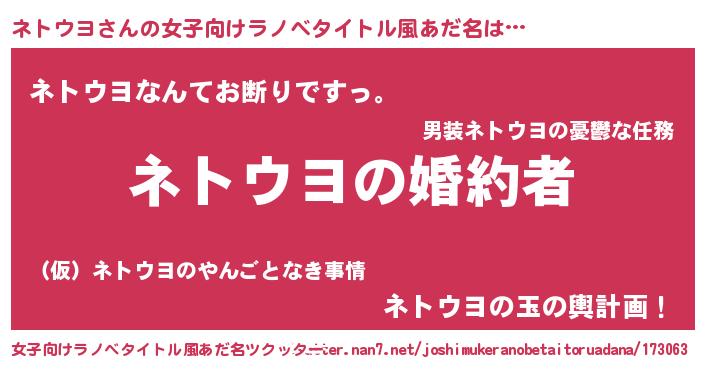 | 可愛いあだ名 | 『ネトちー』『ネトうちぇる』 |