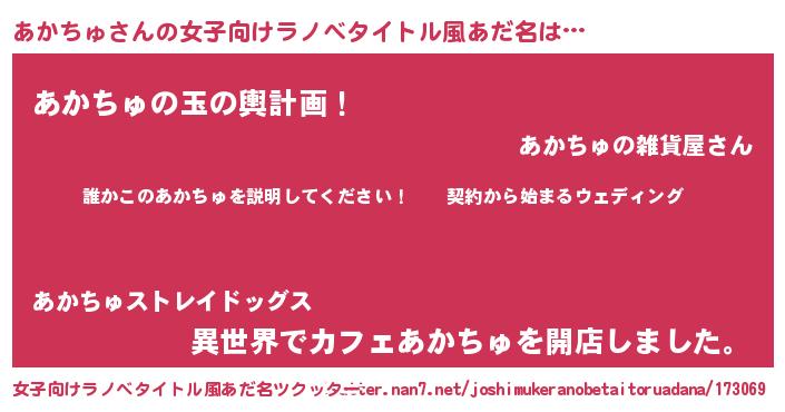 | 胡散臭い通販商品みたいなあだ名 | 『億万長者になれるブレスレット…その名も「あかちゅ」』 |