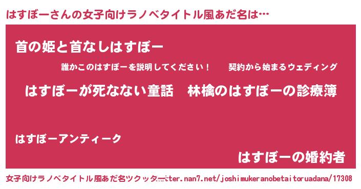 | 男性向けラノベタイトル風あだ名 | 『魔弾の王とはすぼー』 |