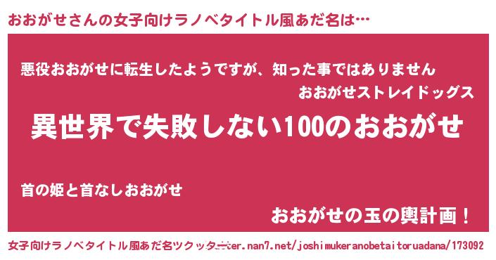 | 男性向けラノベタイトル風あだ名 | 『おおがせという概念が存在しない退屈な世界 』 |
