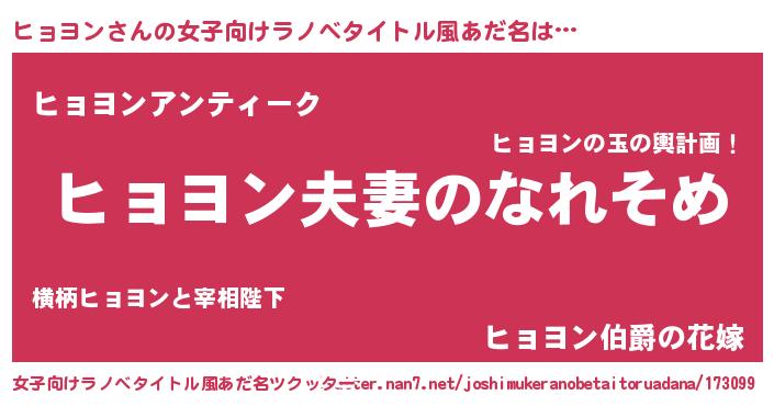 | 男性向けラノベタイトル風あだ名 | 『おまえをオタクにしてやるから、俺をヒョヨンにしてくれ! 』 |