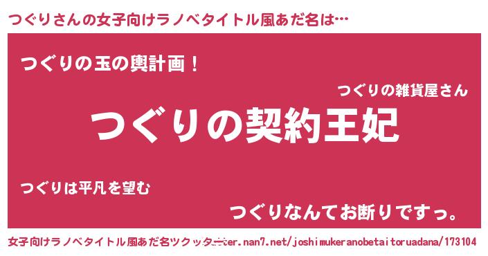 | ファンタジー風あだ名 | 『ツグディッシュ』『ユリツグヴァット』 |