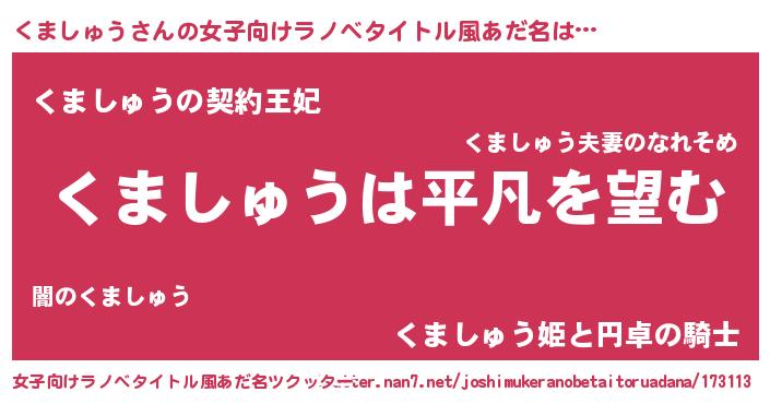 | 胡散臭い通販商品みたいなあだ名 | 『信頼と実績のサプリメント…その名も「くましゅう」』 |