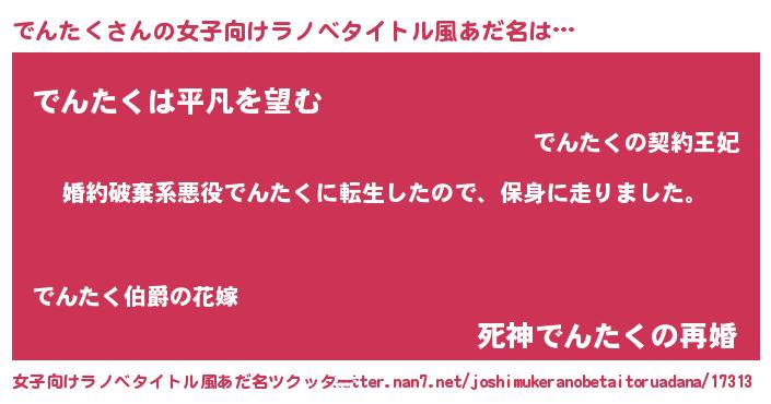 | 胡散臭い通販商品みたいなあだ名 | 『信頼と実績のネックレス…その名も「でんたく」』 |