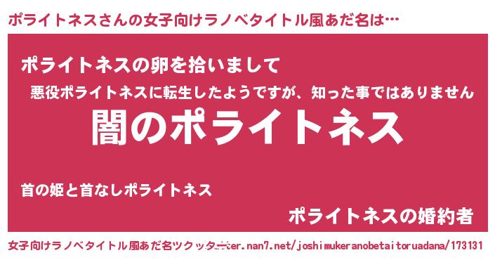 | 男性向けラノベタイトル風あだ名 | 『Re:ポライトネスから始める異世界生活』 |