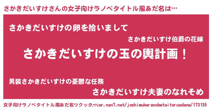 | 意味不明あだ名 | 『なめこ科さかきだいすけ属』 |