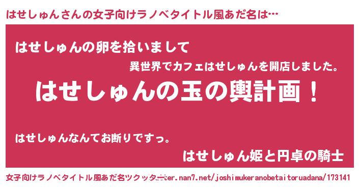 | ヒーロー風カッコイイあだ名 | 『幻影騎士ハセ』『スーパーハセシュン』 |