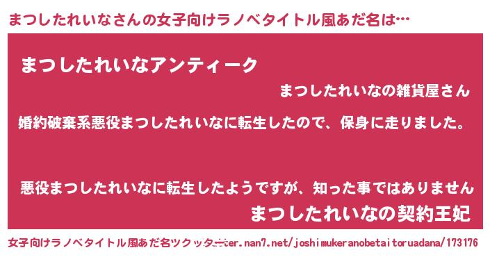 | 男性向けラノベタイトル風あだ名 | 『マツシタレイナスレイヤー』 |