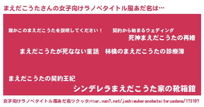 | 男性向けラノベタイトル風あだ名 | 『魔弾の王とまえだこうた』 |