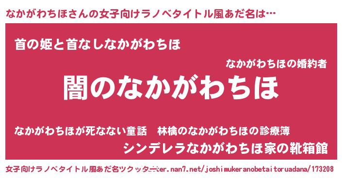 | 男性向けラノベタイトル風あだ名 | 『Re:なかがわちほから始める異世界生活』 |