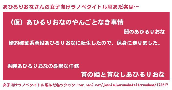 | 胡散臭い通販商品みたいなあだ名 | 『モテモテ間違いなしブレスレット…その名も「あひるりおな」』 |