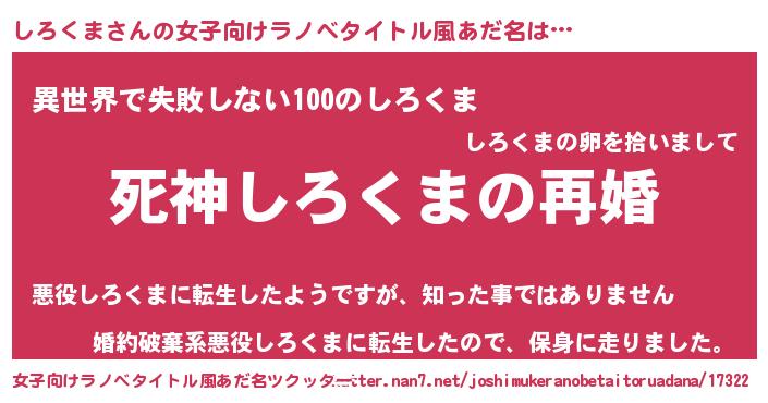 | 男性向けラノベタイトル風あだ名 | 『ノーゲーム・ノーシロクマ』 |